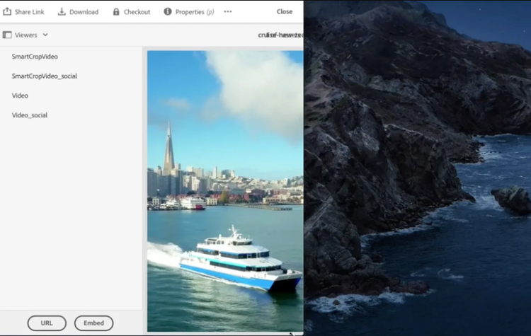 Similar to images, Smart Crop for Video uses Adobe Sensei to automatically detect the point of interest in a video and generate crops that keep the subject in frame. It lets you capture once in a single aspect ratio, then create multiple ratios for different placements (web, social, mobile, etc.) without manual editing.